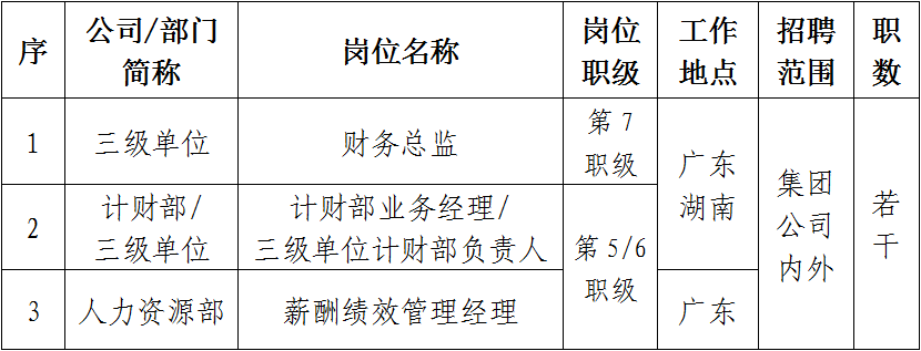 根據(jù)工作需要和公司招聘管理相關(guān)規(guī)定,現(xiàn)對(duì)廣東公司(海外公司)本部及下屬單位共3個(gè)崗位進(jìn)行公開(kāi)招聘。