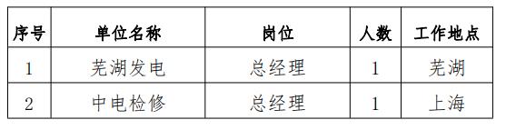 為進(jìn)一步引進(jìn)和吸納高素質(zhì)人才,現(xiàn)市場(chǎng)化選聘在中國(guó)電力所屬三級(jí)單位蕪湖發(fā)電有限責(zé)任公司(簡(jiǎn)稱“蕪湖發(fā)電”)總經(jīng)理、中電電力檢修工程有限公司(簡(jiǎn)稱“中電檢修”)總經(jīng)理崗位。具體事項(xiàng)如下:
