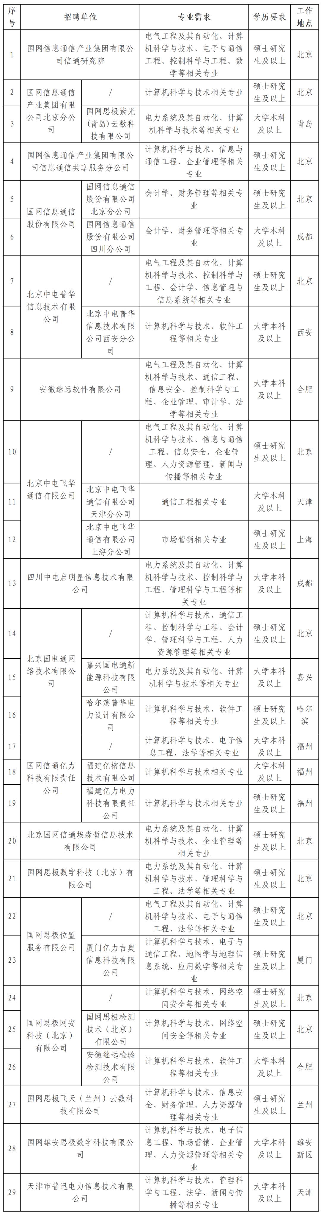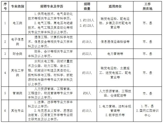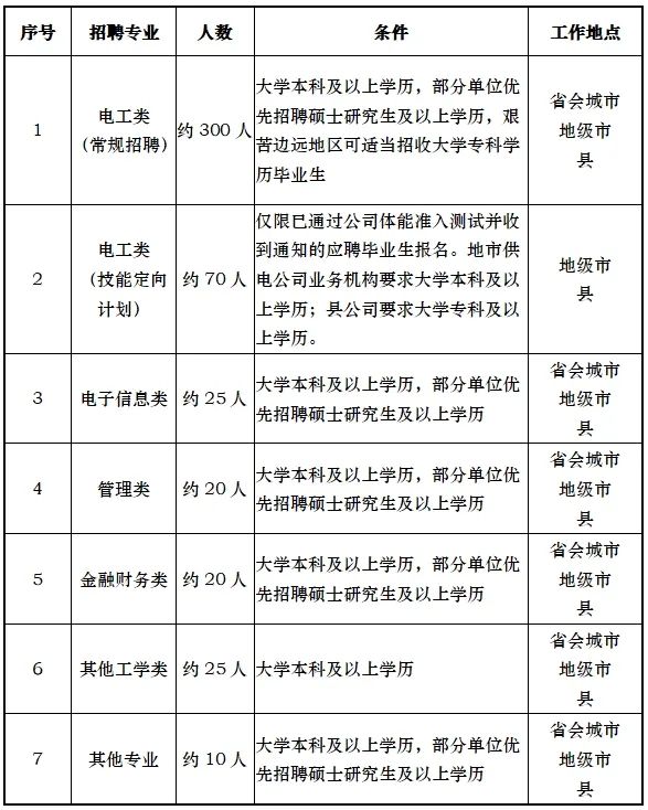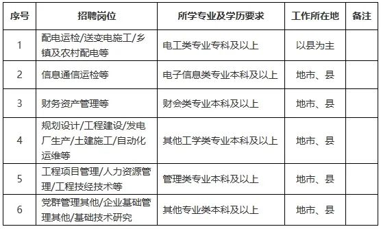 (二)招聘崗位:規(guī)劃、建設(shè)、運(yùn)?、運(yùn)維檢修、營銷、信息通信、物資和培訓(xùn)教育等專業(yè)?線崗位。