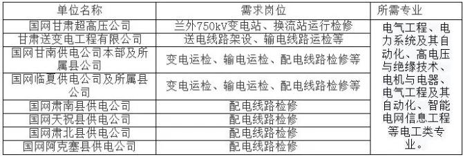 注意:如需應聘表格以外國網甘肅電力其他各層級單位的畢業(yè)生,可繼續(xù)關注國網第一批統(tǒng)一招聘筆試公告