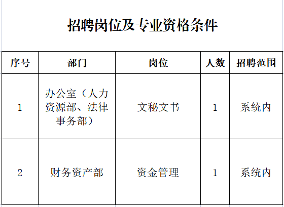 根據(jù)工作需要,公司面向華電系統(tǒng)內(nèi)公開(kāi)招聘一般管理人員2人,有關(guān)事項(xiàng)公告如下: