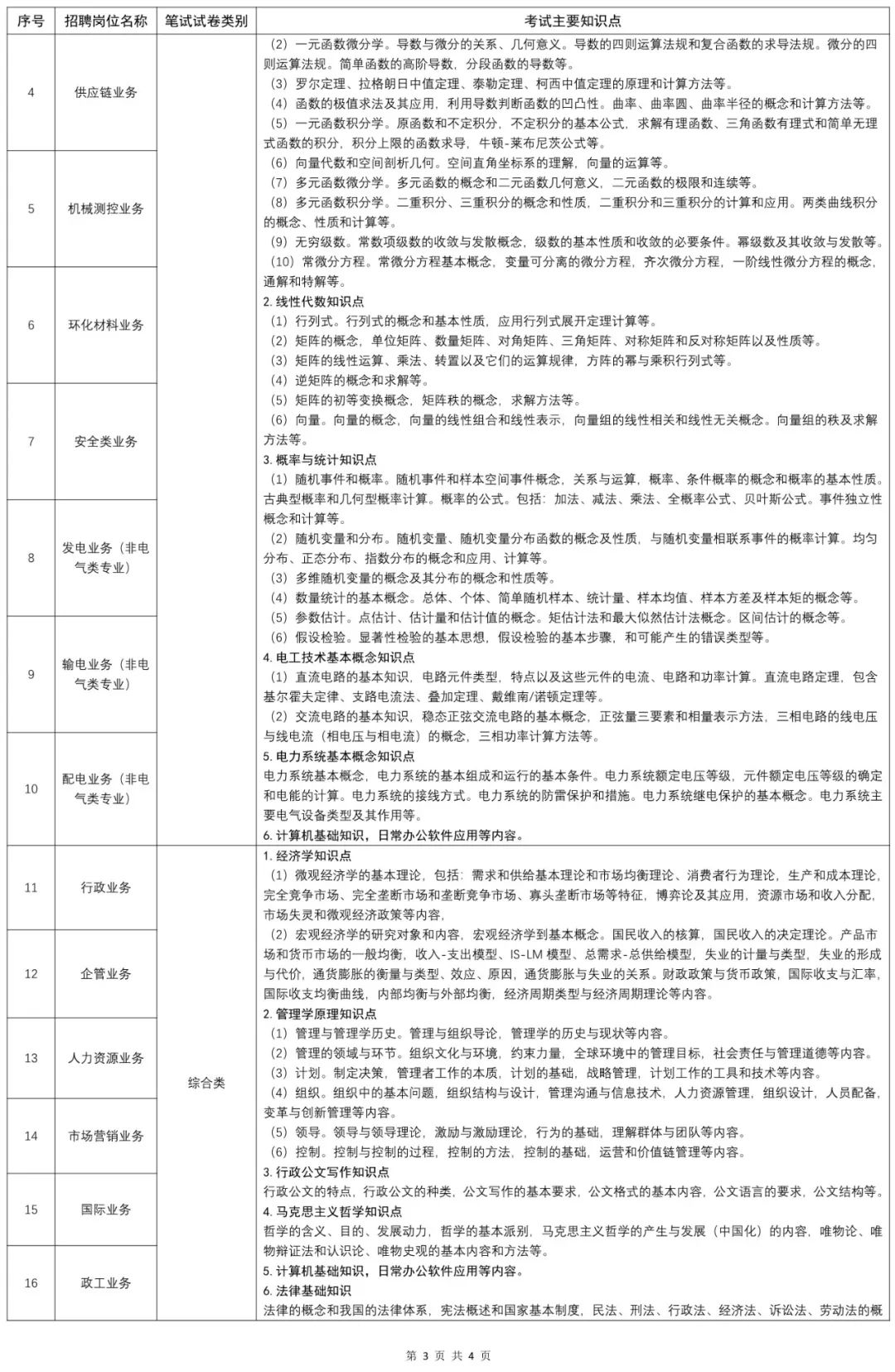 南方電網(wǎng)公司 2024 年校園招聘筆試大綱