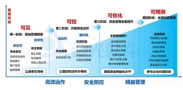 司庫(kù)管理注重強(qiáng)化營(yíng)運(yùn)資金、流動(dòng)性、資本結(jié)構(gòu)、利率匯率風(fēng)險(xiǎn)和融資的管控,通過(guò)司庫(kù)體系建設(shè),企業(yè)可將資金被動(dòng)管理轉(zhuǎn)變?yōu)橹鲃?dòng)管理、超前管理,實(shí)現(xiàn)集團(tuán)各類金融資源可視、可控和增值,成為集團(tuán)戰(zhàn)略落地的堅(jiān)實(shí)保障。