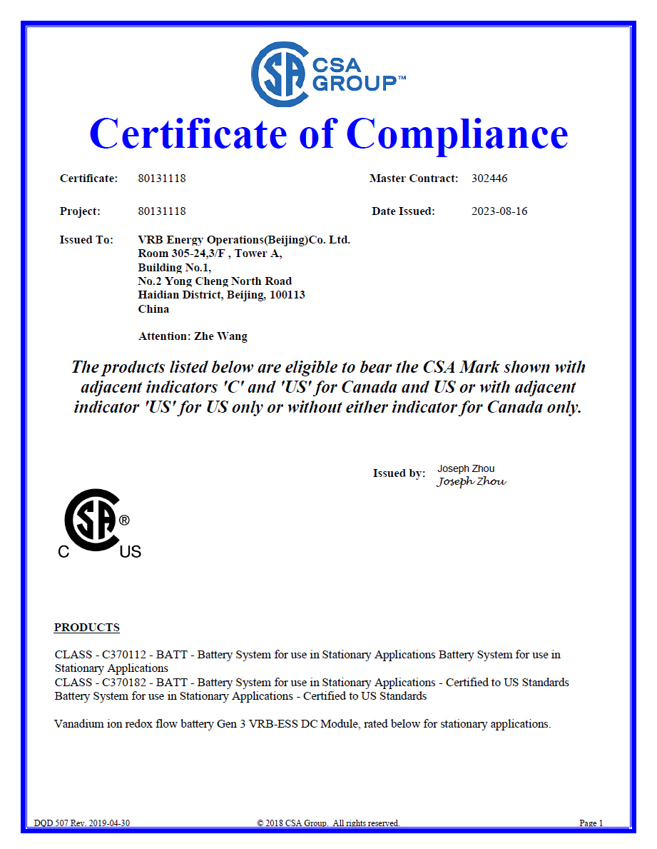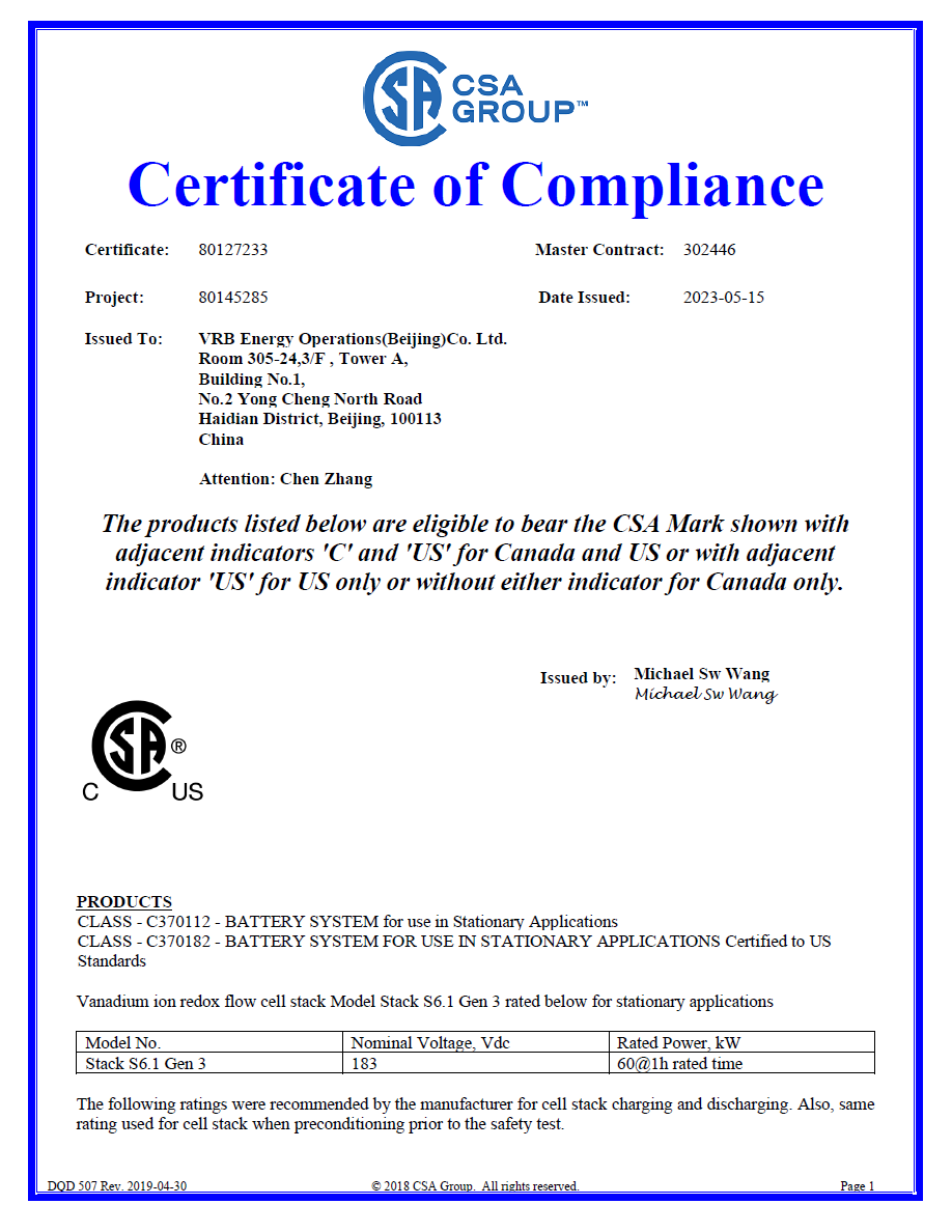 兆瓦級(jí)系統(tǒng)UL1973認(rèn)證證書