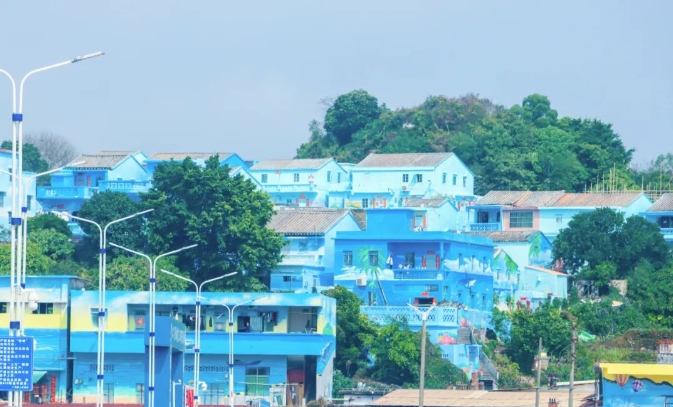 明朝期間,廣東省臺(tái)山市曾是“海上絲綢之路”的重要節(jié)點(diǎn)。中交四航局承建的臺(tái)山市海洋牧場(chǎng)廣海漁旅融合項(xiàng)目包括外立面修復(fù)、漁村升級(jí)等子工程,量身定制的海浪、椰樹等墻繪充分展現(xiàn)漁村的獨(dú)特風(fēng)貌,奠定了漁旅融合發(fā)展的底蘊(yùn),這片“藍(lán)色海洋”吸引眾多游客前來(lái)打卡,盡顯濱海旅游之美。
