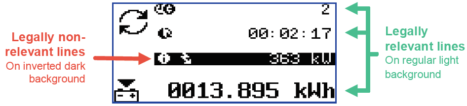 圖5中綠色箭頭指示的字段,即白底黑字部分,顯示如實(shí)時電量、電表S/N、固件版本號等內(nèi)容,這些信息受法規(guī)管控。即萊姆智能電表DCBM每一臺出廠經(jīng)過PTB認(rèn)證后,這些區(qū)域的內(nèi)容都會做報備。用戶不能修改這些信息,只能通過上位機(jī)獲取電表上報的內(nèi)容。