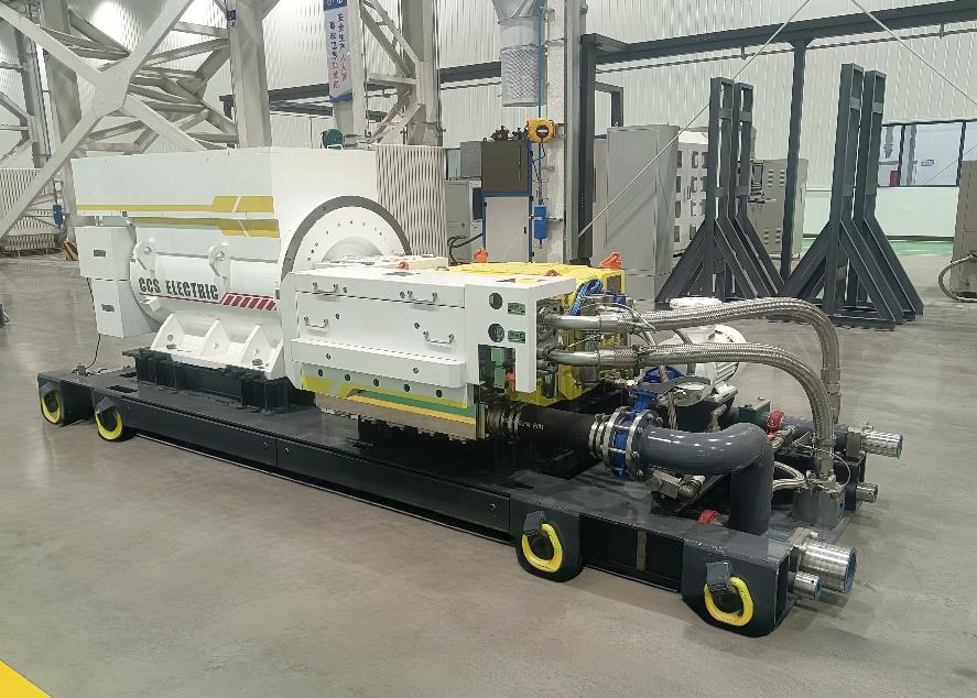 2024年,“2000升/分鐘40兆帕乳化液泵站”研發(fā)成功,該系統(tǒng)是全新一代高端乳化液泵站,首次實(shí)現(xiàn)了高壓超大流量七柱塞驅(qū)動(dòng),超長(zhǎng)跨距的七拐六支撐曲軸交替工作,有效降低了工作液輸出端的流量波動(dòng)。該產(chǎn)品目前是世界最大流量乳化液泵,主要適用于千萬噸級(jí)礦井及遠(yuǎn)距離工作場(chǎng)景,可實(shí)現(xiàn)“一泵替代多泵”,為工作面設(shè)備列車減重減負(fù),進(jìn)一步提升了供液效率,推進(jìn)了我國(guó)礦用高端大流量乳化液泵發(fā)展進(jìn)入快車道。