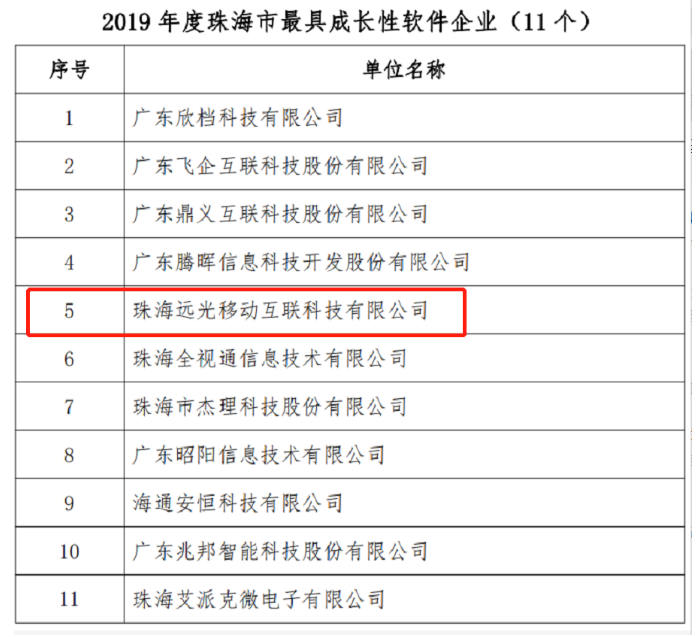 日前,珠海市軟件行業(yè)協(xié)會正式公布2019年度珠海市軟件行業(yè)評選結果,遠光軟件下屬子公司珠海遠光移動互聯(lián)科技有限公司憑借自主創(chuàng)新的研發(fā)能力和穩(wěn)步向上的發(fā)展態(tài)勢,獲2019年度珠海市“最具成長性軟件企業(yè)”稱號。