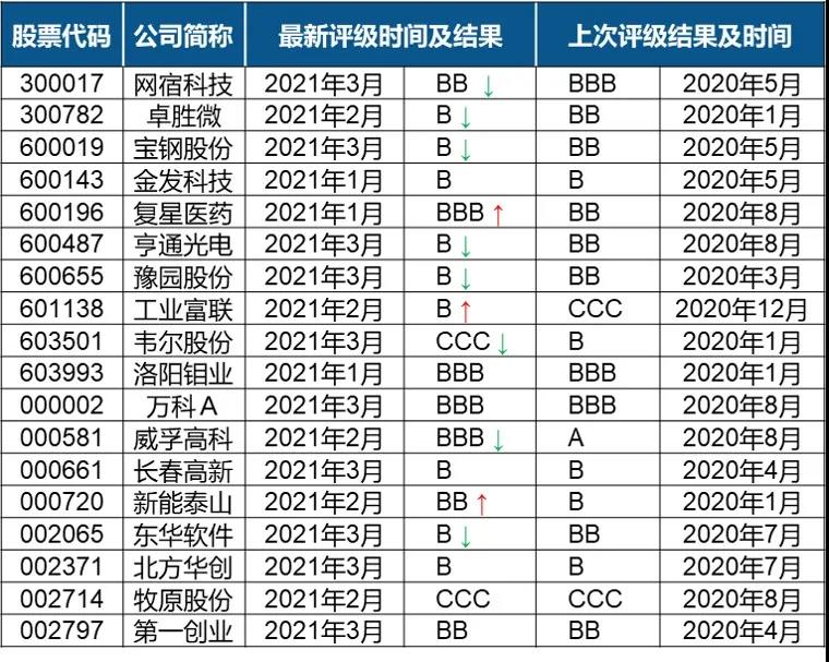 圖:A股最新ESG評級調(diào)整情況(不包括2021年新增)