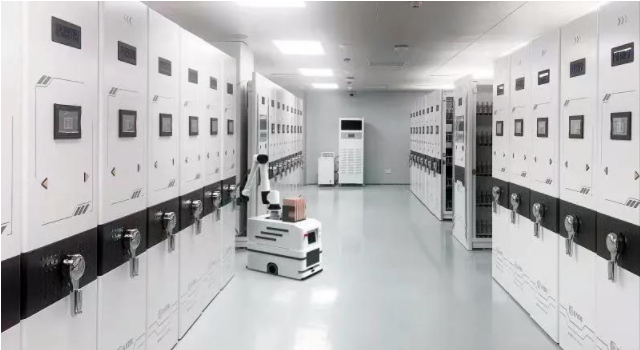 此外,還通過引入智能制造、物聯(lián)網技術,結合票據交收設備、裝盒設備、AGV機器人、智能密集架、智能檔案盒等智能終端,實現實物檔案從交收、裝盒、歸檔全過程的無人自動化管理,并與線上電子檔案對接匹配,強化一體化管理。