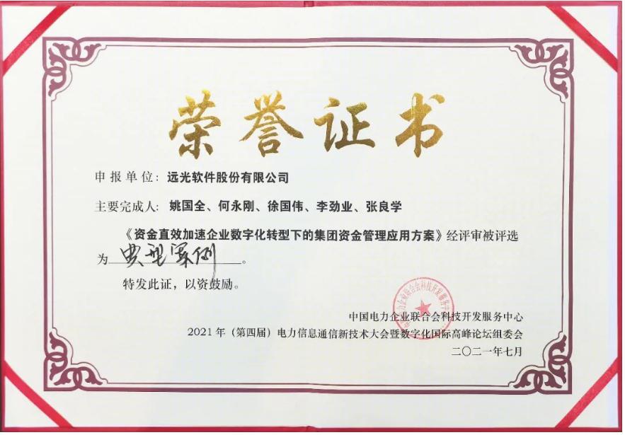 案例公布 共推優(yōu)秀電企數字化轉型成果大會同期召開電力企業(yè)數字化轉型案例終審評審會,并在會上公布最終獲選的優(yōu)秀案例和典型案例名單。本次案例征集活動致力于協同推進電力行業(yè)數字化轉型和數字產業(yè)化發(fā)展,展示企業(yè)數字化轉型背景下的電力行業(yè)最新成果。遠光軟件自主研發(fā)的“資金直效加速企業(yè)數字化轉型下的集團資金管理應用方案”、協助支持的客戶項目“智慧財務經營大數據分析應用”、“電力智慧共享財務管理平臺”,憑借新技術應用和顯著的應用價值,皆入選為“典型案例”。