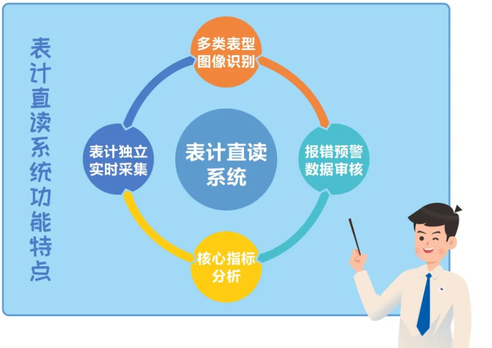表計綜合管理系統(tǒng)通過外置的高清圖像采集終端,對電廠里的電表、氣表、熱表及水表等計量儀表進(jìn)行高清圖像采集,并進(jìn)行表盤圖模智能識別,將采集的高清圖像進(jìn)行數(shù)據(jù)格式轉(zhuǎn)換,統(tǒng)一接口輸出,自動生成表計數(shù)據(jù)并管理,支持?jǐn)?shù)據(jù)溯源和人工核對,支持終端自動校時,各表讀數(shù)時間點、頻率等可依據(jù)實際需求自定義設(shè)置。