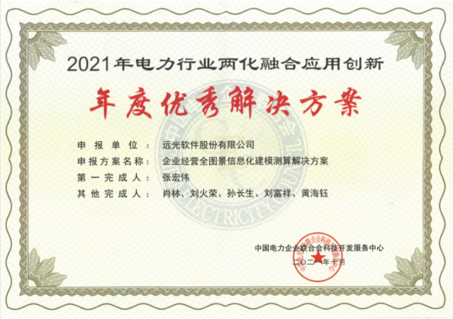 近日,在由中國電力企業(yè)聯(lián)合會主辦的“2021年電力行業(yè)兩化融合應(yīng)用創(chuàng)新”評選活動(dòng)中,遠(yuǎn)光軟件“企業(yè)經(jīng)營全圖景信息化建模仿真測算解決方案”憑借創(chuàng)新企業(yè)信息化測算建模管理模式獲評“年度優(yōu)秀解決方案”。