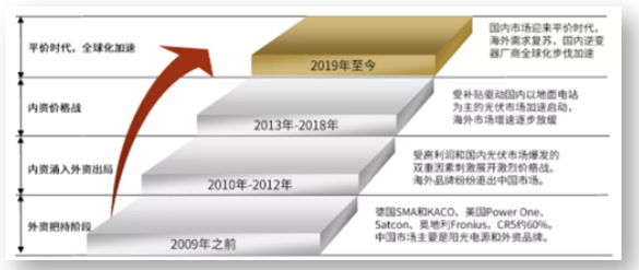 回顧逆變器的發(fā)展歷史,2003年陽光電源推出中國首臺(tái)擁有自主知識產(chǎn)權(quán)的逆變器。2012年全球出貨量前十中只有陽光電源一家中國企業(yè)。2015年以來,華為、陽光電源和SMA的出貨量前三地位穩(wěn)定,而行業(yè)腰部企業(yè)市場份額接近,競爭更為激烈。在激烈的角逐中,中國逆變器企業(yè)逐漸崛起。如今,陽光電源、華為等品牌逆變器穩(wěn)扎穩(wěn)打,在國際站穩(wěn)腳跟。歷經(jīng)激烈競爭、行業(yè)迭代,我國逆變器企業(yè)實(shí)現(xiàn)從無到有、從有到強(qiáng)的強(qiáng)勢蛻變。