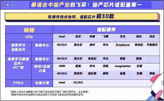 以百度飛槳為例,經(jīng)過對(duì)大量真實(shí)生產(chǎn)場(chǎng)景的反復(fù)打磨,已經(jīng)能夠使傳統(tǒng)企業(yè)在智能化轉(zhuǎn)型中實(shí)現(xiàn)高性能開發(fā)、大規(guī)模訓(xùn)練、不同場(chǎng)景和不同軟硬件平臺(tái)敏捷部署。更重要的是,飛槳已經(jīng)和包括百度昆侖芯、華為昇騰、英特爾、英偉達(dá)在內(nèi)的22家國(guó)內(nèi)外硬件廠商,完成了31種芯片的適配和優(yōu)化,覆蓋全部國(guó)內(nèi)外主流芯片,最大程度幫助企業(yè)降本增效。