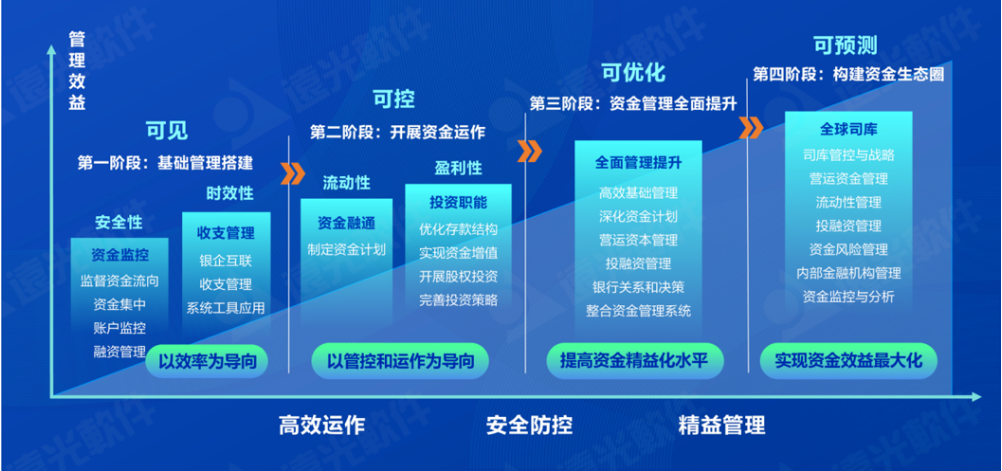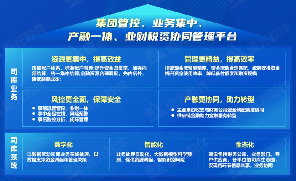 遠(yuǎn)光軟件深耕財(cái)務(wù)數(shù)字化領(lǐng)域多年,基于集團(tuán)企業(yè)資金精益管理需求,聚焦資金效率、效益和安全,充分應(yīng)用“大云物移智鏈”等新興技術(shù),自主研發(fā)出遠(yuǎn)光全球司庫管理系統(tǒng),構(gòu)建上下互通、內(nèi)外互聯(lián)的資金管理體系,促進(jìn)業(yè)財(cái)在更深層次融合、資金在更大范圍內(nèi)共享,推動(dòng)資金管理向數(shù)字化、智能化、生態(tài)化轉(zhuǎn)型。