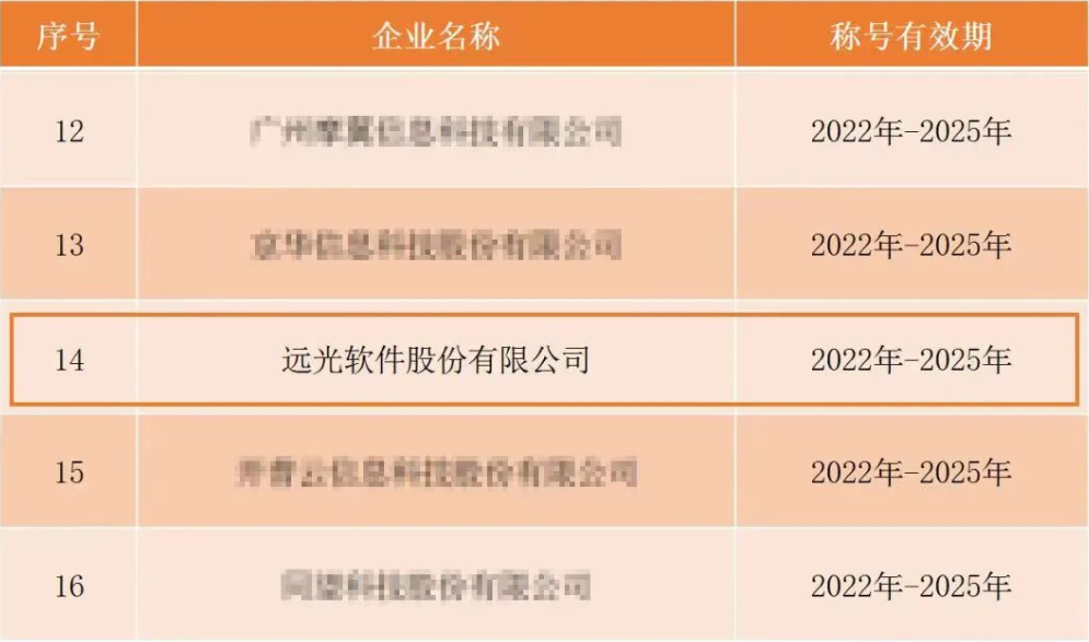 2022年12月20日,中國軟件行業(yè)協(xié)會發(fā)布“中國軟件誠信示范企業(yè)(2022-2025年)名單”,遠光軟件榮獲“中國軟件誠信示范企業(yè)”榮譽稱號。