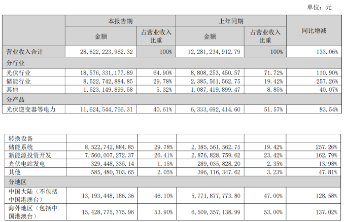 上半年,儲能系統(tǒng)營收為85.2274億元,占營收比重高達(dá)29.78%。