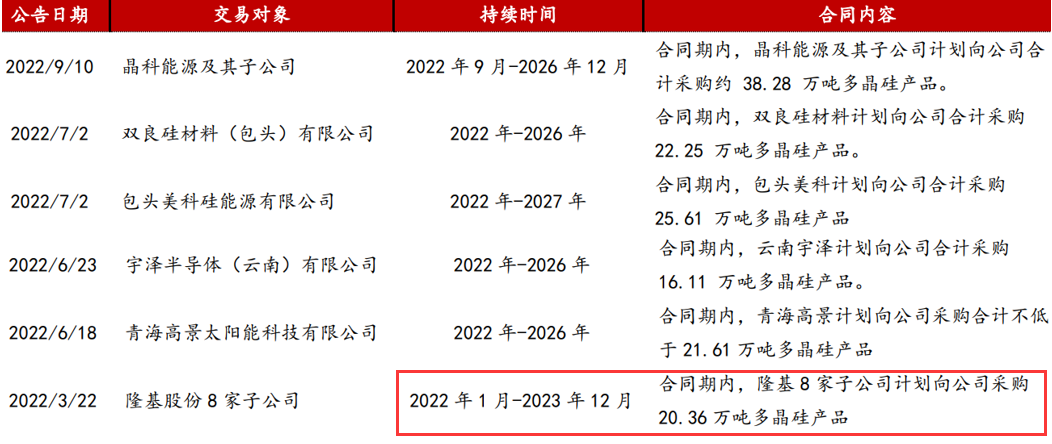 不過,隆基綠能也是有過硅料大單公告記錄的。
