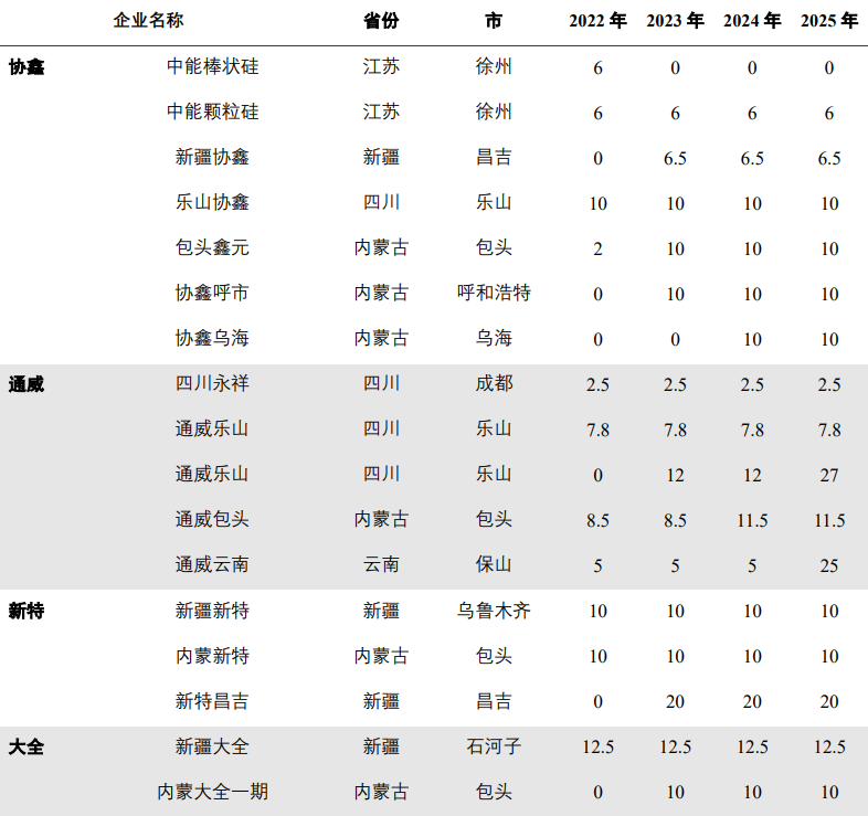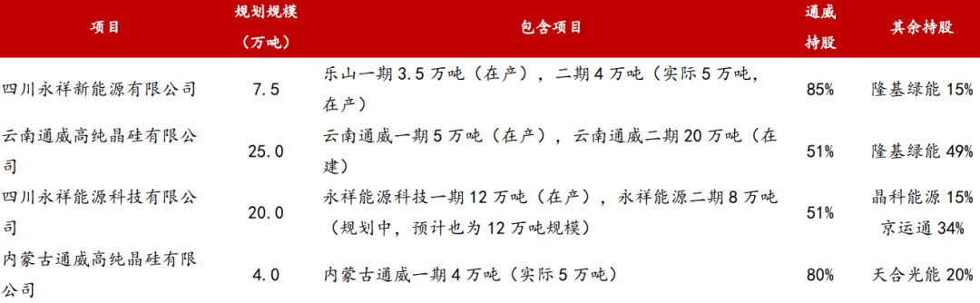 通威股份硅料產(chǎn)能合作情況;來源:公司公告