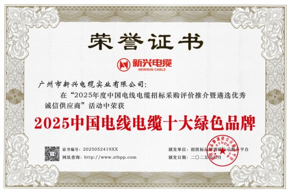 近日,在招投標(biāo)品牌調(diào)研公示服務(wù)平臺(tái)主辦的第四屆“2025年度中國(guó)電線電纜招標(biāo)采購(gòu)評(píng)價(jià)推介暨遴選優(yōu)秀誠(chéng)信供應(yīng)商活動(dòng)”中,新興電纜憑借卓越的產(chǎn)品質(zhì)量和技術(shù)實(shí)力,獲得五項(xiàng)行業(yè)重要認(rèn)可:"2025中國(guó)電力電纜供應(yīng)商綜合實(shí)力50強(qiáng)"、"2025中國(guó)民營(yíng)電線電纜企業(yè)10強(qiáng)"、"2025中國(guó)電線電纜招標(biāo)采購(gòu)十大推薦品牌"、"2025中國(guó)電力電纜十大品牌"和"2025中國(guó)電線電纜十大綠色品牌"。
