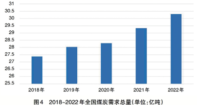 近五年來,全國煤炭消費(fèi)總量隨著GDP增長同步逐年上升,2022年預(yù)計(jì)達(dá)到30.3億噸標(biāo)準(zhǔn)煤(見圖4)。
