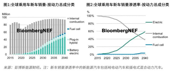 彭博新能源財經(jīng)最新發(fā)布的《新能源汽車市場長期展望》報告指出,到2040年,新能源汽車在全球乘用車銷量的占比預計達58%,在乘用車保有量的占比達31%。除乘用車外,新能源車在公交車保有量的占比將達67%,在兩輪摩托車占比達47%,在輕型專用車占比達24%。