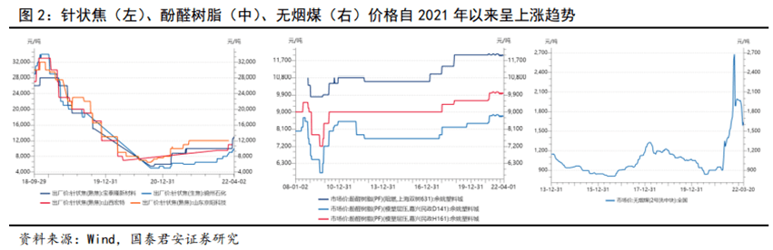 原料價格:過去優(yōu)質(zhì)負極材料主要采用進口原料(主要指進口針狀焦),2019-2020年原料國產(chǎn)化替代加速,產(chǎn)品成本顯著下降。2021年以來,國內(nèi)負極材料主要原料的價格呈現(xiàn)上漲趨勢。下游需求持續(xù)增長,供需博弈下原料價格的上漲已成定局,負極材料廠商成本承壓,而壓力能否傳導(dǎo)至下游電池廠商,取決企業(yè)基于技術(shù)壁壘和客戶資源所構(gòu)筑的議價能力。