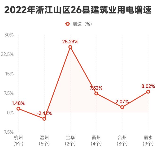 2022年,全省建筑業(yè)用電量為102.64億千瓦時,同比下降1.75%。山區(qū)26縣全年建筑業(yè)用電量12.08億千瓦時,同比增長3.82%,增速高于全省平均水平,實現(xiàn)了逆勢增長。這是浙江推進山海協(xié)作,加快補齊山區(qū)縣域交通基礎(chǔ)設施、新型城鎮(zhèn)化建設短板,在電量上的正向體現(xiàn)。