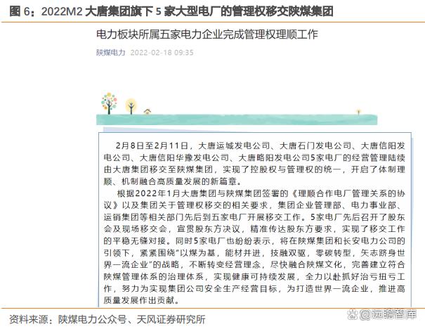 ? 大唐集團(tuán):2022M2 將旗下信陽、信陽華豫、略陽、運(yùn)城、石門 5 家大型電廠的管理權(quán)移交給陜煤集團(tuán),實現(xiàn)控股權(quán)與管理權(quán)的統(tǒng)一。