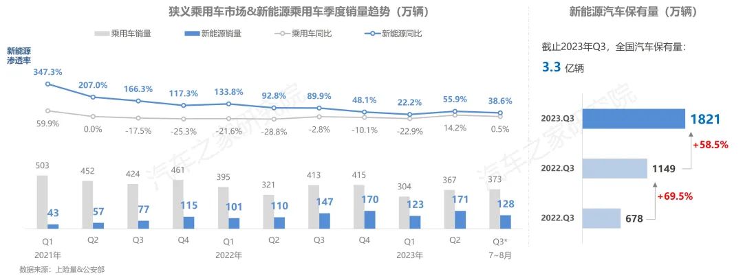 今年以來,國家層面針對汽車行業(yè)轉(zhuǎn)型升級的政策頻出,使得中國車企在新能源的浪潮中迎來重大的發(fā)展機(jī)遇。此外,商務(wù)部推動“百城聯(lián)動”汽車節(jié)和“千縣萬鎮(zhèn)”新能源汽車消費(fèi)季效果顯現(xiàn),這都無疑在讓中國的汽車產(chǎn)業(yè)從生產(chǎn)端與消費(fèi)端兩個(gè)方向,呈現(xiàn)出新能源汽車市場爆發(fā)式增長。目前,中國新能源汽車保有量已經(jīng)突破1800萬輛,今年1-8月新能源乘用車更是取得超420萬輛銷量的成績,同比增長逾三成,市場滲透率持續(xù)保持超30%的高水平發(fā)展。