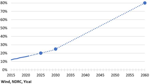 未來幾年可能會增加更多的非化石燃料產(chǎn)能?!?ldquo;十四五”可再生能源發(fā)展規(guī)劃》預(yù)計,到2025年,非化石能源占中國能源消費的比重將從2021年的17%上升到25%。但這僅僅是個開始,根據(jù)中國的長期排放戰(zhàn)略,到2060年,非化石能源在能源消費中的比重將上升到80%。這表明,對低碳發(fā)電的大規(guī)模投資將持續(xù)三十多年(圖6)。