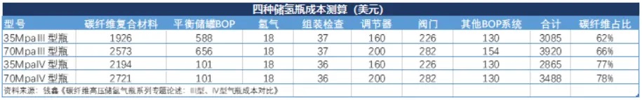 從儲氫瓶的發(fā)展趨勢看,70Mpa的Ⅳ型瓶將是主流,最主要的成本大頭是碳纖維。
