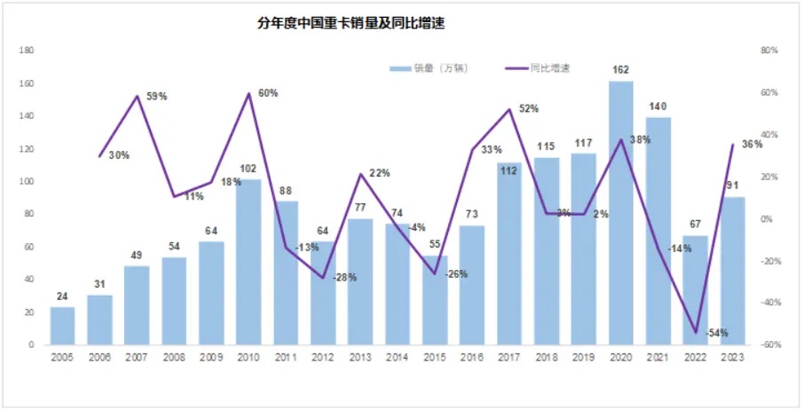 從中長期看,現(xiàn)有的燃油重卡大概率都會被替換成氫能重卡,對應(yīng)著每年大概100萬輛的需求。