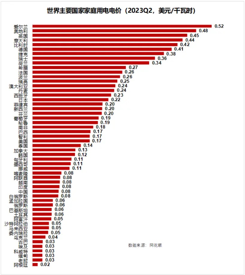 從國際比較的角度看,尤其是相比發(fā)達(dá)國家,中國的電價相當(dāng)?shù)谋阋?,一度?美分左右。比較高的像德國,一度電0.41美元,折合人民幣將近3塊。