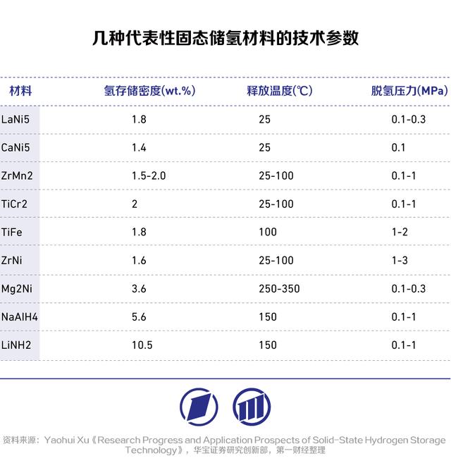 固態(tài)儲氫是近年來的新亮點,分為物理吸附儲氫和化學儲氫兩種路線。物理吸附儲氫是指通過范德華力將氫氣分子吸附在固體表面,儲氫材料包括碳基材料、無機多孔材料和金屬有機骨架化合物等,其缺點主要在于大多數(shù)物理吸附類材料在較低的溫度下才能達到一定的儲氫密度,常溫常壓下吸氫量很低。化學儲氫材料主要包括金屬氫化物、配位氫化物、化學氫化物等。其中,金屬氫化物因其高氫儲存容量和良好的循環(huán)穩(wěn)定性而成為研究重點。固態(tài)儲氫可在接近常溫常壓的環(huán)境中完成儲放,兼具體積儲氫密度高、可逆性、循環(huán)壽命高、安全性好、供氫純度高等優(yōu)點,應(yīng)用前景為市場所看好。