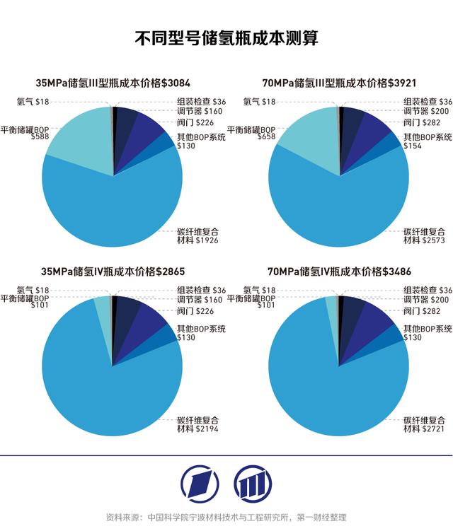 ?、粜蛢淦坎粌H性能更優(yōu),成本也低于Ⅲ型儲氫瓶。根據(jù)中國科學院寧波材料技術(shù)與工程研究所近期的測算,35MPa、70MPa的儲氫Ⅲ型瓶成本價格分別為3084美元、3921美元,而35MPa、70MPa的儲氫Ⅳ型瓶成本價格分別為2865美元和3486美元,分別低7%和11%。