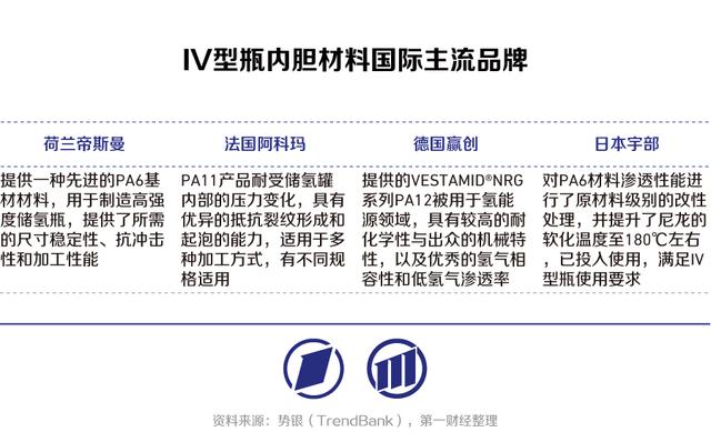 當前國內(nèi)Ⅳ型儲氫瓶內(nèi)膽材料主要由國外企業(yè)供應(yīng),包括日本宇部興產(chǎn)、荷蘭帝斯曼、美國杜邦(塞拉尼斯)、法國阿科瑪?shù)?,成本較高,是下一階段國產(chǎn)化突破的重點。
