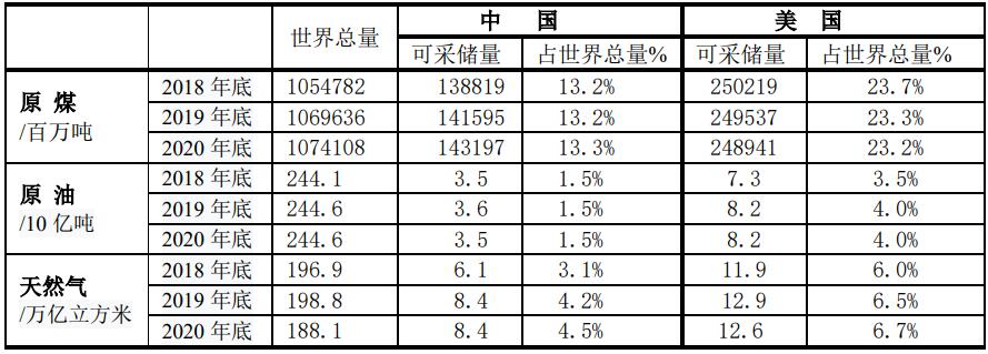 當(dāng)今能源消費(fèi)仍然以化石燃料為主。此表來自BP 2019~2021年報告的數(shù)據(jù)匯總而成,很明顯地看出,中國化石燃料的可采儲量遠(yuǎn)低于美國,因此支撐中國經(jīng)濟(jì)發(fā)展的原煤、原油和天然氣均需大量進(jìn)口。
