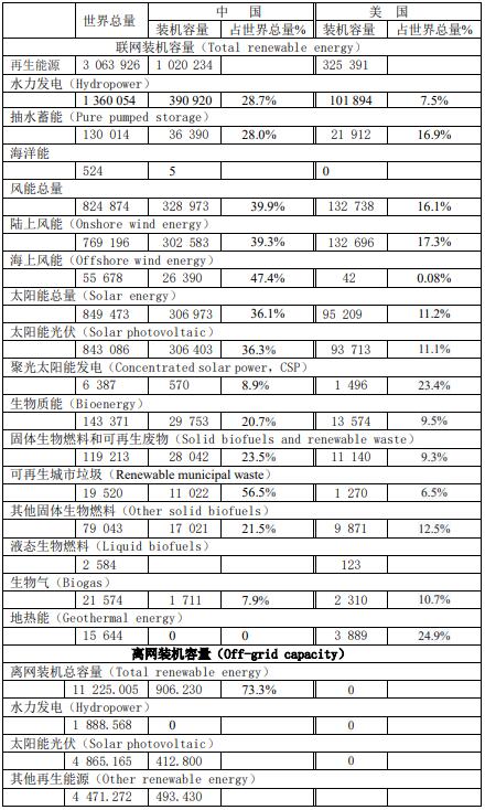 本報告的數(shù)據(jù)來自IRENA 2022年報告,由于中國和美國是世界上最大的經(jīng)濟(jì)體,跟世界各國一樣都在追求“Net zero by 2050”。 本文匯總兩大經(jīng)濟(jì)體在再生能源方面的進(jìn)展,單位使用的是裝機(jī)容量,以MW表示。
