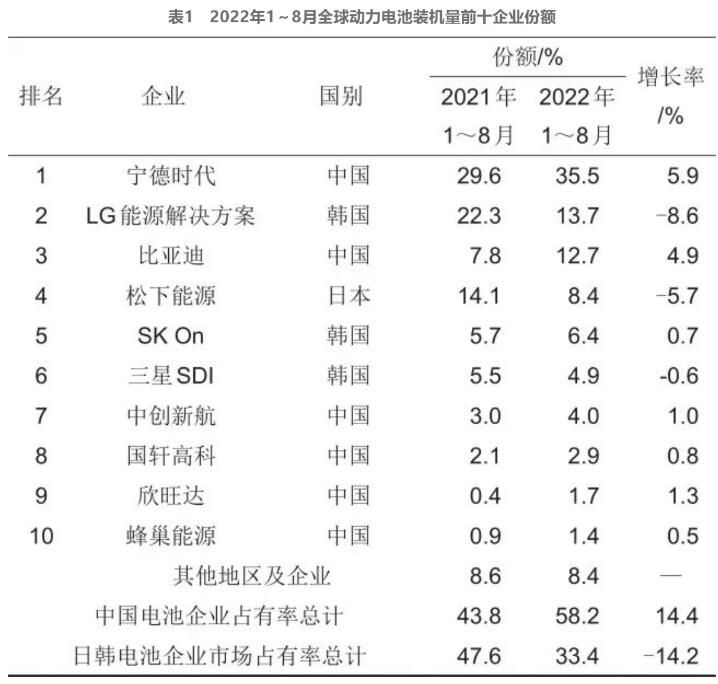 (2)日韓擴大電池產(chǎn)業(yè)鞏固全球市場份額