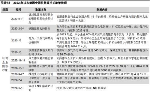 四是,推出一系列補貼方案,幫助企業(yè)以及民眾度過能源危機。針對企業(yè),德國政府2022年以來先后采取政府采購、增值稅率調(diào)整、成立產(chǎn)業(yè)基金、政府注資、價格剎車、長期補貼等一系列政策,旨在減少企業(yè)的能源價格壓力,促進新能源企業(yè)和行業(yè)發(fā)展。針對民眾,德國政府于2022年2月23日、3月25日和9月24日,推出三個能源救濟方案,合計900億歐元,對普通民眾和特殊需要照顧人群實施能源補貼,并限制了能源價格上限,也間接穩(wěn)定了制造業(yè)的勞動力供給。
