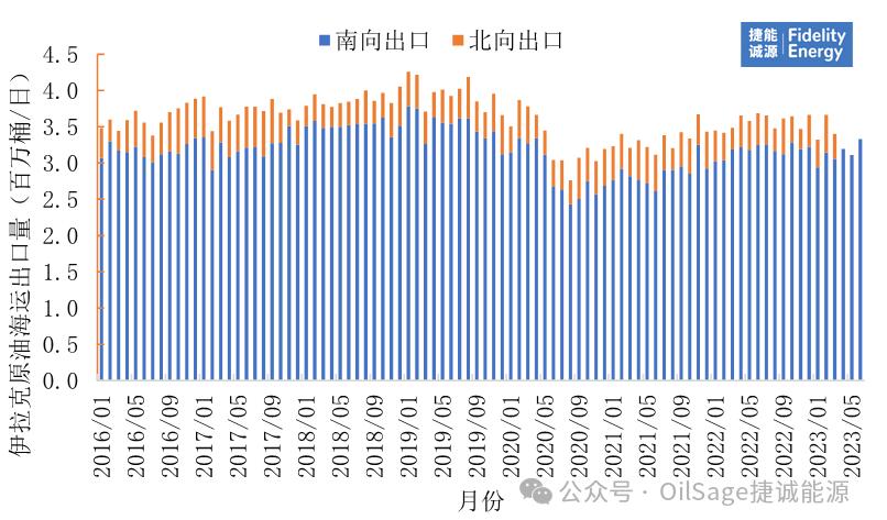除了海運(yùn)外,伊拉克還通過(guò)卡車向約旦出口相對(duì)少量的原油,并通過(guò)從杰伊漢碼頭到安卡拉附近的土耳其基里卡萊煉油廠的陸上管道通過(guò)內(nèi)陸路線向土耳其出口原油。杰伊漢-基里卡萊管道的產(chǎn)能為14.5萬(wàn)桶/日。伊拉克將與約旦的合同延長(zhǎng)一年,2023年5月平均銷售1萬(wàn)桶/日。然而,在伊拉克-土耳其管道恢復(fù)運(yùn)營(yíng)之前,伊拉克對(duì)Kirikkale煉油廠的出口已經(jīng)停止。