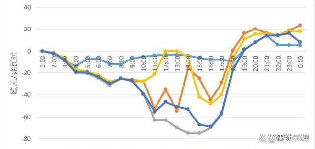數(shù)據(jù)顯示,今年前八個(gè)月,歐洲國(guó)家電價(jià)為負(fù)的總時(shí)間長(zhǎng)達(dá)7841小時(shí),有些時(shí)段甚至跌至-20歐元/兆瓦時(shí)。想象一下,發(fā)電廠這邊拼命發(fā)電,電多得用不完,而市場(chǎng)電價(jià)卻需要倒貼錢(qián)。