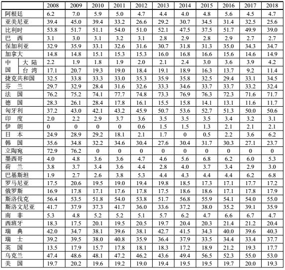 本數(shù)據(jù)是世界核能協(xié)會(huì)(World Nuclear Association,WNA)于 2019年8月份提供的數(shù)據(jù)。德國和日本核能發(fā)電在世界各國電力中的份額處于逐年下降,而中國大陸卻上升。