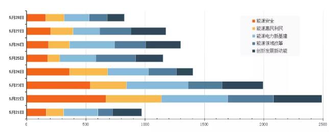 根據(jù)中電傳媒能源情報(bào)研究中心輿情監(jiān)測(cè)室監(jiān)測(cè),能源安全、能源惠民利民、能源電力新基建、能源領(lǐng)域改革、創(chuàng)新發(fā)展新動(dòng)能等輿論熱度較高。能源安全的輿情監(jiān)測(cè)結(jié)果中,包含了能源供應(yīng)、石油天然氣儲(chǔ)備等相關(guān)報(bào)道;能源惠民利民的輿情監(jiān)測(cè)結(jié)果中,包含了降低用能成本、降低工商業(yè)電價(jià)5%政策延長(zhǎng)到今年年底、農(nóng)村電網(wǎng)建設(shè)、清潔取暖等相關(guān)報(bào)道;能源電力新基建的輿情監(jiān)測(cè)結(jié)果中,包含了能源電力新基建、充電樁、能源互聯(lián)網(wǎng)等相關(guān)報(bào)道;能源領(lǐng)域改革的輿情監(jiān)測(cè)結(jié)果中,包含了電力體制改革、油氣體制改革、國(guó)資國(guó)企改革等相關(guān)報(bào)道;創(chuàng)新發(fā)展新動(dòng)能的輿情監(jiān)測(cè)結(jié)果中,包括了氫能、儲(chǔ)能、能源技術(shù)裝備創(chuàng)新以及智慧能源等相關(guān)報(bào)道。