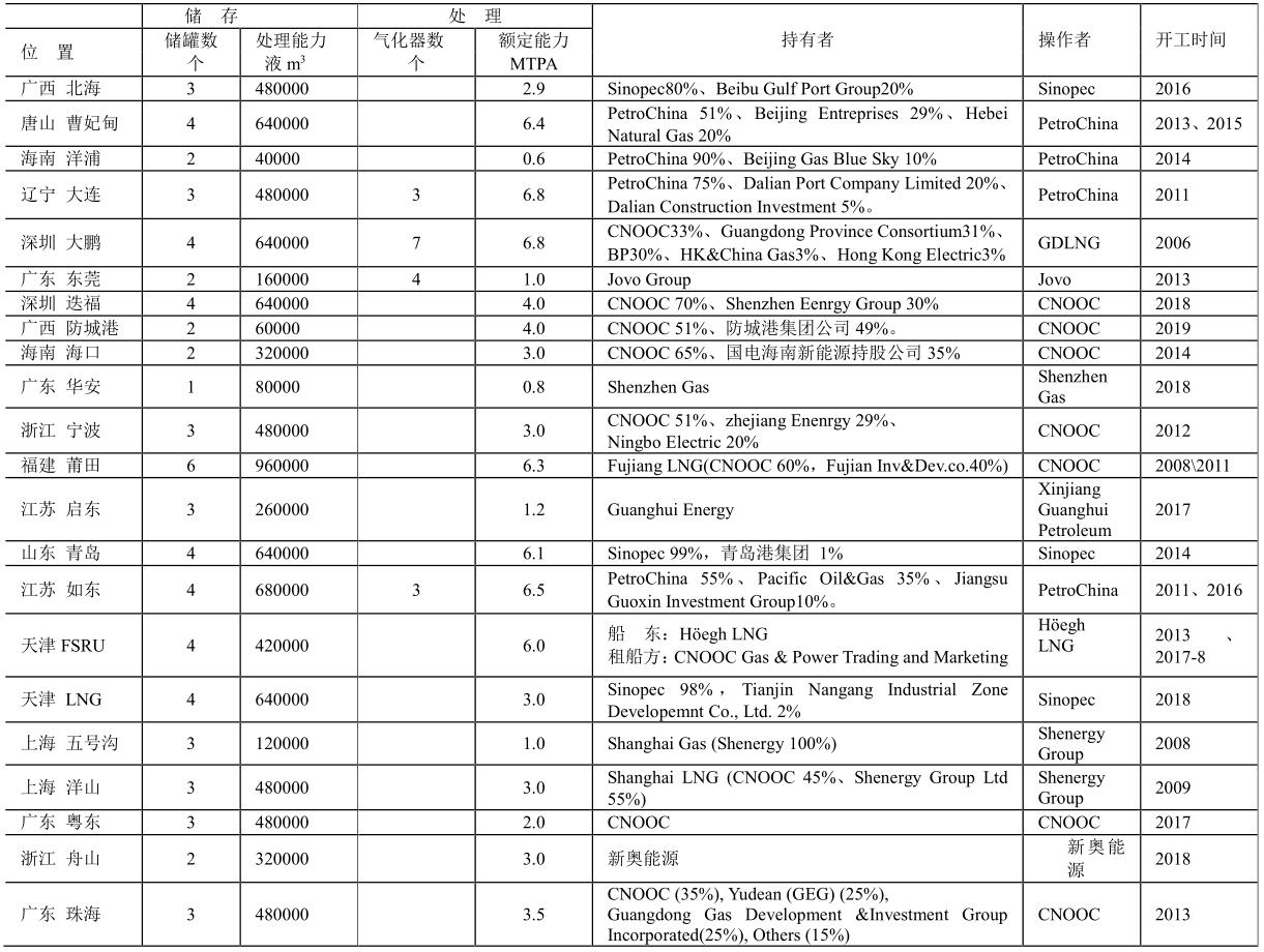 曹妃甸、寧波、莆田、啟東、青島、如東等現(xiàn)有碼頭正在進行擴建工程。預(yù)計到2021年,這些擴建將增加超過15 MTPA氣化能力。2018年LNG儲罐罐容約53億立方米。