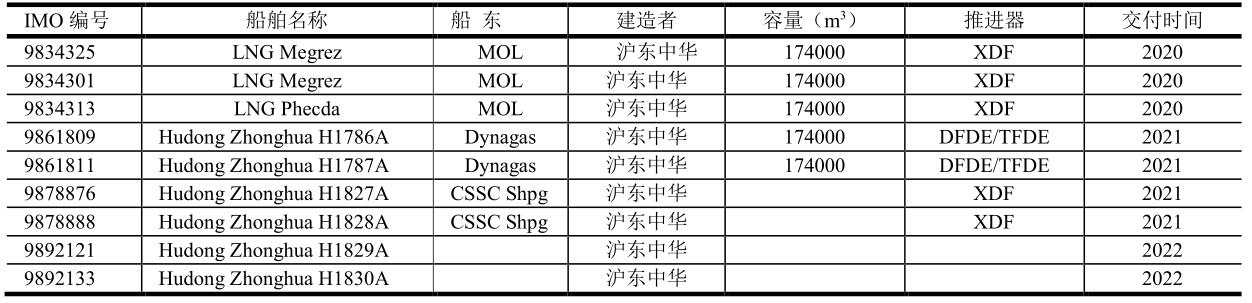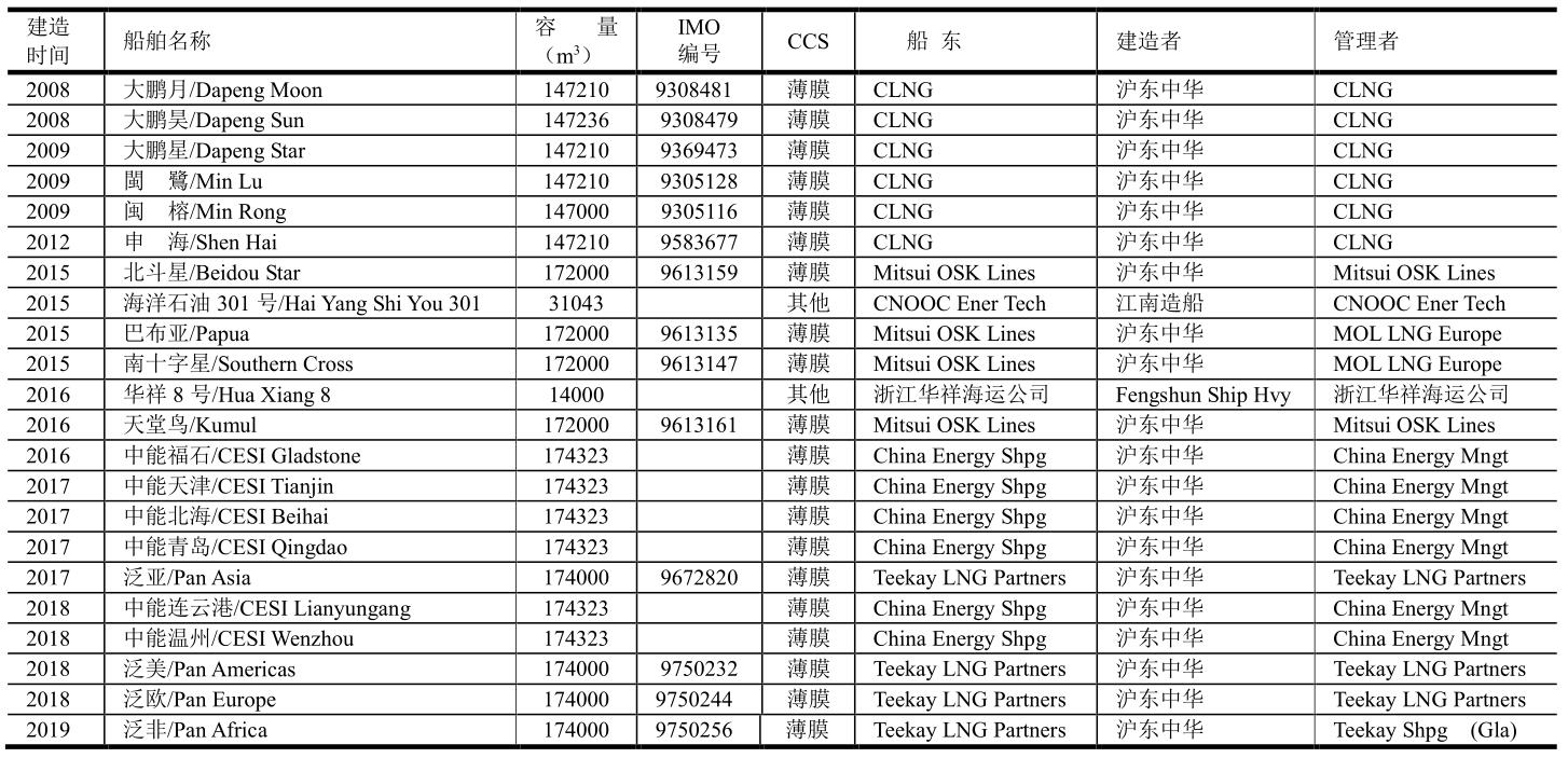 2019年中國交付的LNG船舶