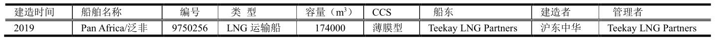 2019年全球交付44艘船舶,包括4艘FSRU和2艘小于50000m3的船舶。交付船舶的平均容量(4艘FSRU和2艘小于50000m3的船舶)為173827 m3。2019年中國交付的LNG運輸船舶只有一艘泛非號。