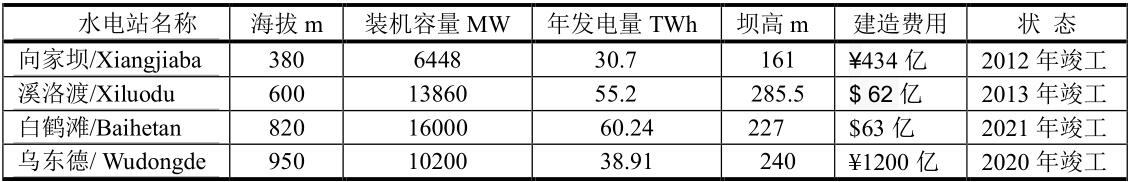 金沙江上四座世界級的水電站